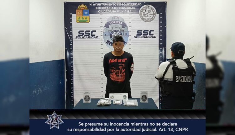 Playa del Carmen. – La Secretaría de Seguridad Ciudadana Municipal (SSCM) de Solidaridad informó sobre la detención de Luis “N”, un joven de 21 años originario de Yucatán, a quien se le aseguraron 25 dosis de posibles narcóticos y un teléfono móvil.