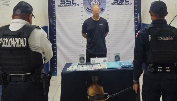Playa del Carmen. – Como parte de las acciones operativas para prevenir la comisión de delitos, la Policía Municipal de Solidaridad aseguró a un sujeto en posesión de posibles drogas en la colonia Gonzalo Guerrero.