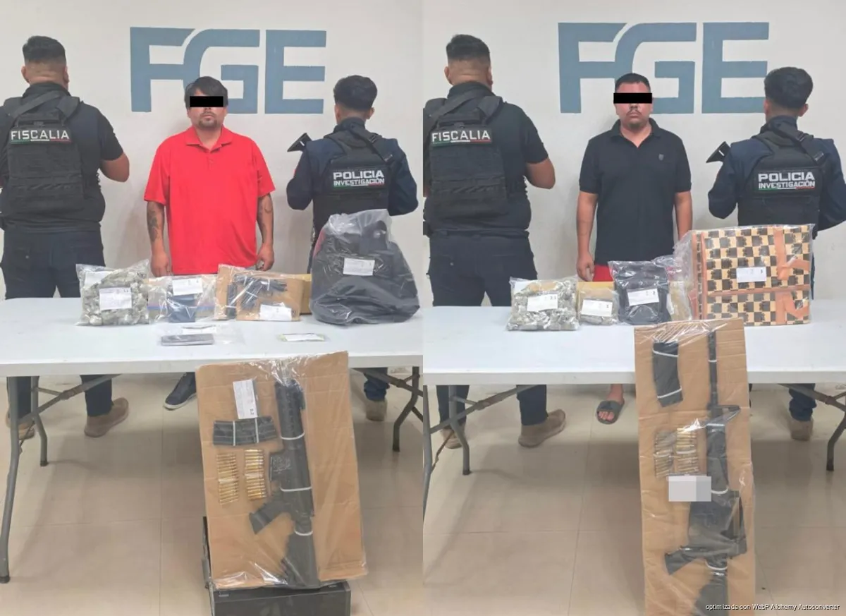 Playa del Carmen.— En operativos separados realizados en zonas habitacionales del municipio, agentes de la Fiscalía General del Estado de Quintana Roo detuvieron a dos hombres en posesión de presuntos narcóticos y armas de fuego de alto poder, hechos que se enmarcan en investigaciones activas por delitos contra la salud.