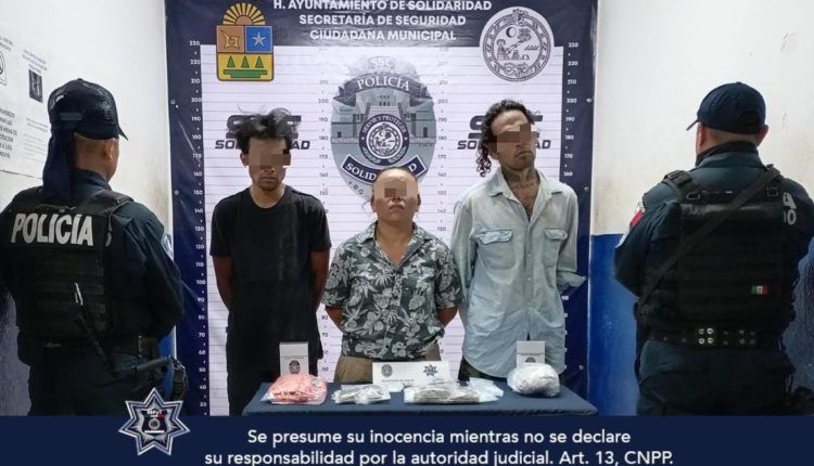Elementos de la Secretaría de Seguridad Ciudadana Municipal de Solidaridad, en recorrido de vigilancia en la colonia Ejido, logró el aseguramientos de tres personas, quienes fueron presentados un juez para su determinación jurídica.