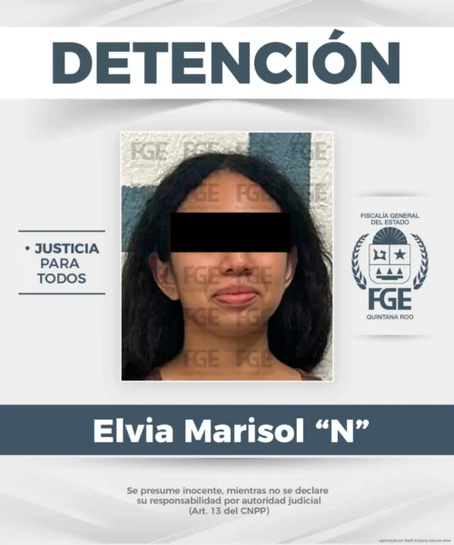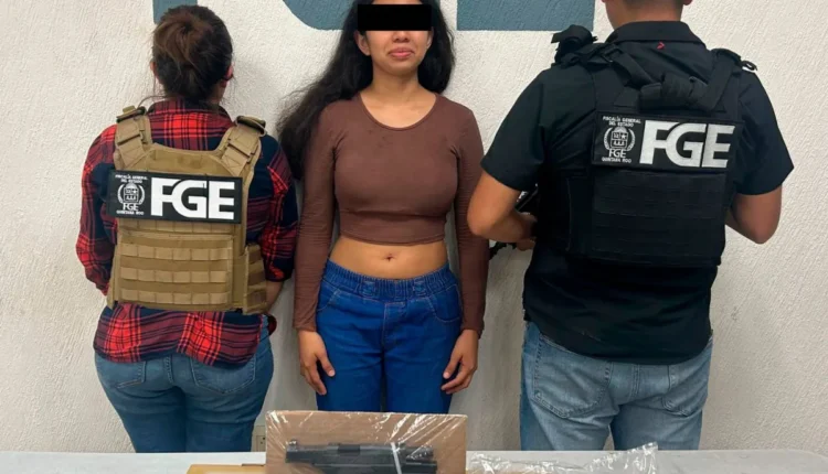 Playa del Carmen, Quintana Roo.– Elementos de la Fiscalía General del Estado de Quintana Roo detuvieron a una mujer identificada como Elvia Marisol “N”, en posesión de presunta droga y un arma de fuego que estaría relacionada con al menos tres homicidios en la entidad.