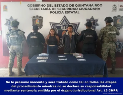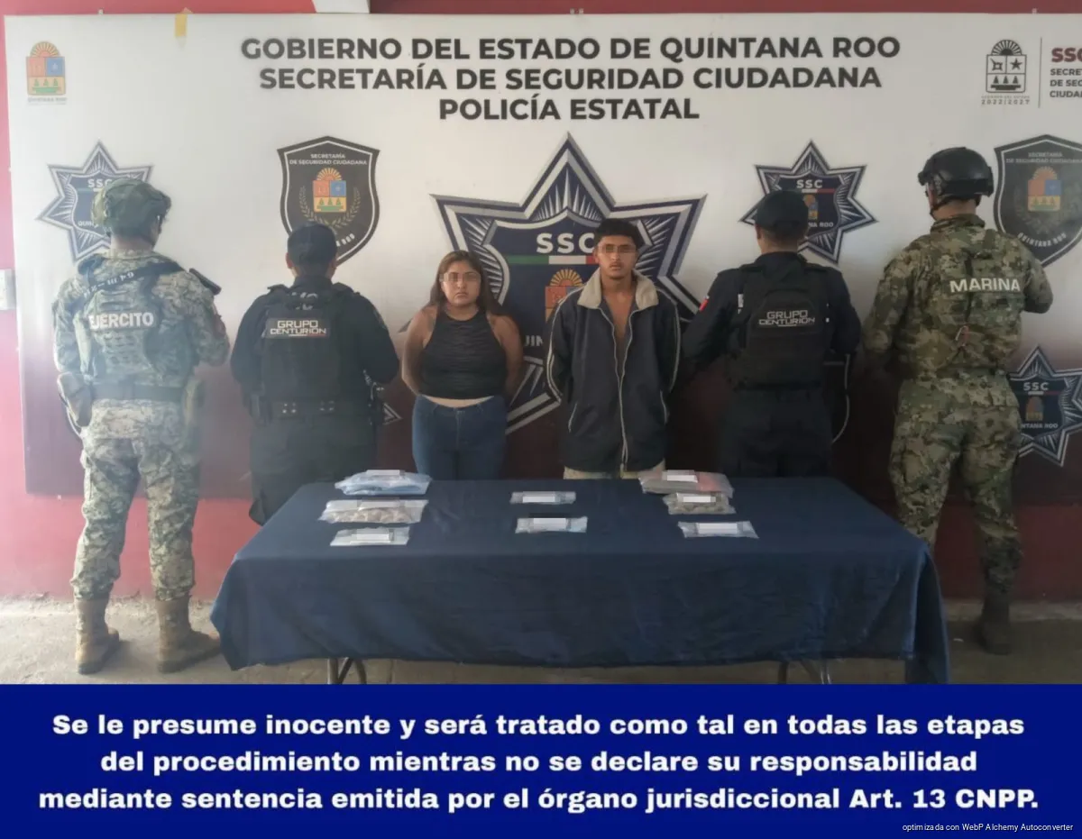 En una segunda intervención, los agentes detectaron a una pareja intercambiando bolsitas con presunta droga sobre el tramo carretero Cancún–Punta Sam, también en la Supermanzana 86 de Puerto Juárez.