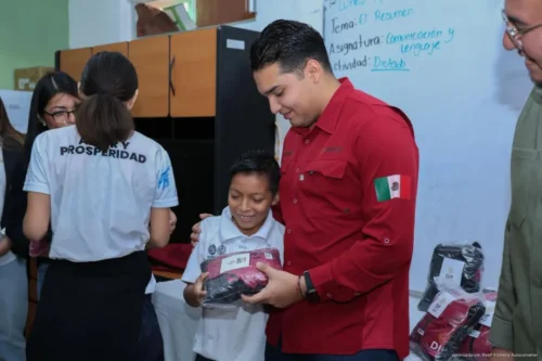 La entrega fue encabezada por el presidente honorario del DIF Playa del Carmen, Eduardo Asencio, acompañado por la directora general del sistema DIF, Deyanira Martínez, quienes refrendaron el respaldo institucional a las y los estudiantes para que continúen su formación académica.
