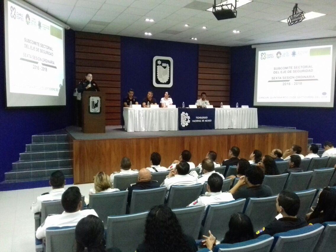 El funcionario participó hoy en la Sexta Sesión Ordinaria del Subcomité Sectorial del Eje de Seguridad en Benito Juárez en el Instituto Tecnológico de Cancún, evento en el que se presentaron los avances de los Programas Sectoriales de la Secretaría Municipal de Seguridad Pública y Tránsito de Benito Juárez, Dirección General del H. Cuerpo de Bomberos y la Dirección General de Protección Civil.