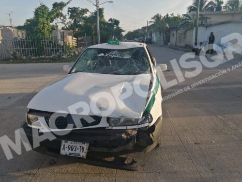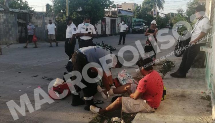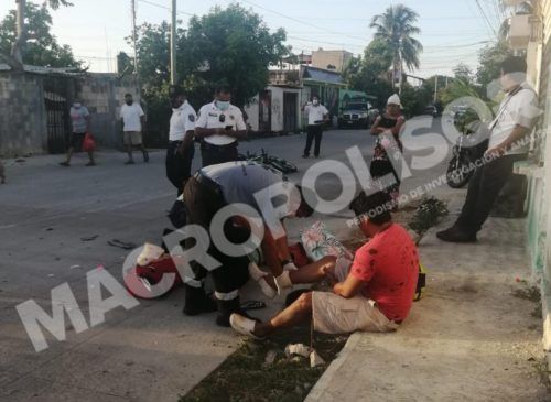 Cancún, Quintana Roo, 3 de julio 2021. – Dos lesionados y daños fue el saldo de un accidente donde están involucradas una motocicleta y un taxi del sindicato Andrés Quintana Roo en la avenida Costa Maya