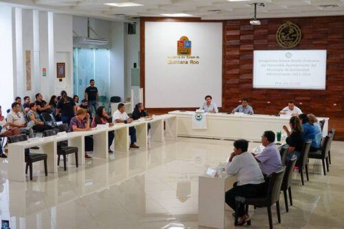 Playa del Carmen. – Durante la sexagésima octava sesión ordinaria de Cabildo, encabezada por el segundo regidor Rubicel López en funciones de presidente en representación de Lili Campos, se aprobó la declaración del Teatro Xaman Ha como recinto oficial temporal para la celebración del 31 Aniversario de Solidaridad y, la actualización del reglamento de protección y bienestar animal de este municipio.