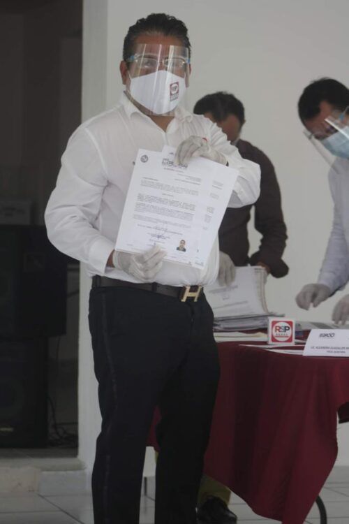 Respetando los protocolos sanitarios pare evitar alguna propagación de Covid-19 y otras adicionales que el partido RSP para sus seguidores, el candidato permaneció en las oficinas electorales por más de una hora ya que se hizo una revisión minuciosa de los documentos requeridos.