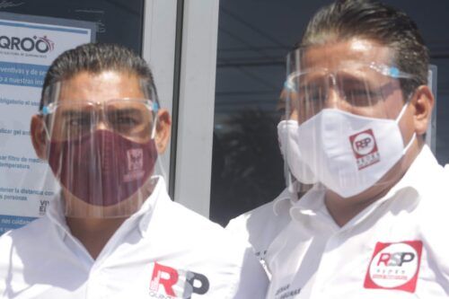 Acompañado del presidente de RSP, profesor Hugo Colín Góngora, el candidato García Lagunas acudió junto con su familia y sus compañeros de planilla en punto de la 11:00 AM al Consejo Municipal del Ieqroo en Solidaridad donde entregó la documentación completa que fue recibida por la vocal Alejandra Guadalupe Medina Dzul, quien le entregó el acusé respectivo.