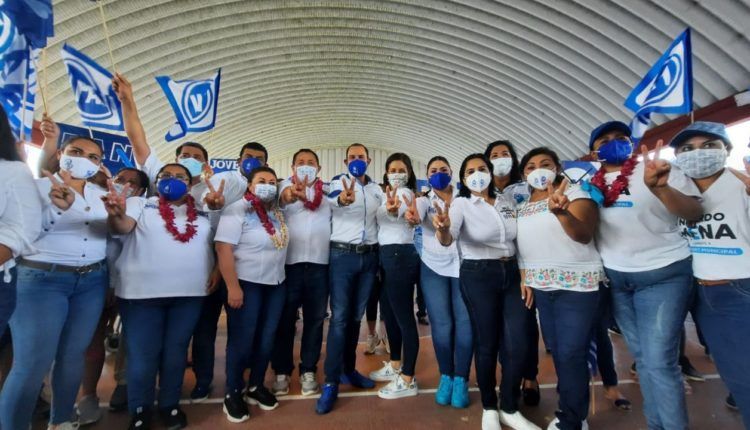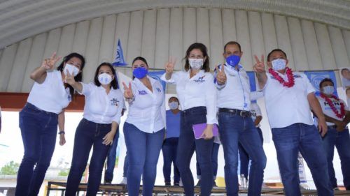 Para cerrar la gira de trabajo. El dirigente nacional del PAN y Mayuli Martínez, acompañaron en un mitin a Atenea Gómez Ricalde.
