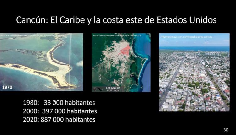 Este crecimiento se ha dado lejos de las zonas turísticas, bajo los esquemas de segregación, de apropiación y de desposesión, pasando en Cancún de 33 mil habitantes en 1980 a 887 mil habitantes en 2020, por dar un ejemplo.