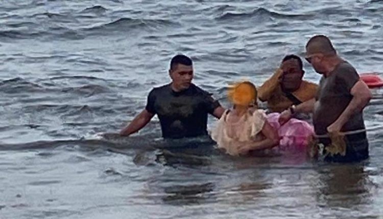 La mujer quien fue rescatada logró abrazar de nuevo a sus familiares que se encontraban cerca de la zona, pero esperaron que los Marinos hicieran su acto heroico de salvar a la mujer que estuvo a punto de ahogarse.