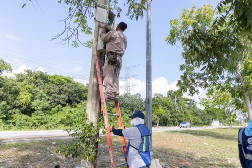 El gobierno municipal y FONATUR realizan esfuerzo conjunto para instalar 160 postes y 320 lámparas y reducir áreas oscuras sobre la carretera federal 307