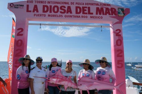 Puerto Morelos.- Con la participación de 32 embarcaciones y más de 250 mujeres, la gobernadora Mara Lezama Espinosa dio el pitazo de salida para participar en el Torneo Internacional de Pesca Deportiva Femenil “La Diosa del Mar”.