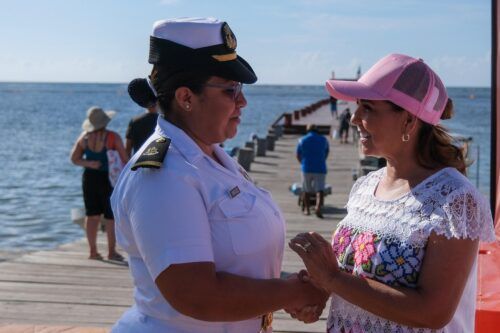 Acompañada de la presidenta municipal de Puerto Morelos, Blanca Merari Tziu, y de la presidenta del Comité Organizador, Karla Luna Rodríguez, la titular del Ejecutivo saludó a las participantes y les deseó mucha suerte.