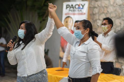 Paoly Perera destacó que “la fuerza de esta alianza lo tienen ustedes, los mejores líderes están aquí, por eso no les fallaré, soy candidata ciudadana que representa al pueblo, por eso no les fallaré, trabajare como lo hace una mujer de Carrillo Puerto”.