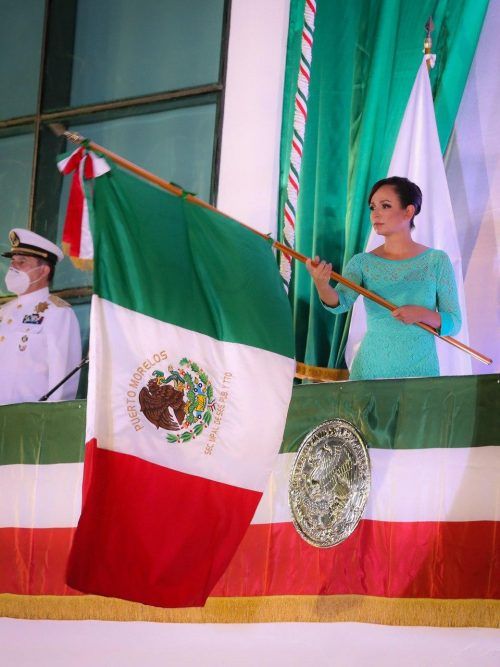 Con gran fervor patrio y mucho entusiasmo, la alcaldesa salió al balcón del Palacio Municipal, desde donde arengó: ¡Mexicanos!, ¡Vivan los héroes que nos dieron patria y libertad!, ¡Viva Hidalgo!, ¡Viva Morelos!, ¡Viva Guerrero!, ¡Viva Andrés Quintana Roo!, ¡Viva Josefa Ortiz de Domínguez!, ¡Viva Allende!, ¡Vivan Aldama y Matamoros!, ¡Viva Leona Vicario!, ¡Viva Puerto Morelos!, ¡Viva nuestra Democracia!, ¡Viva la independencia nacional!, ¡Viva México!, ¡Viva México!, ¡Viva México!
