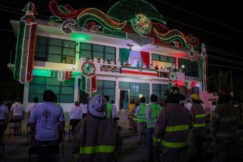 Puerto Morelos, Quintana Roo, 15 de septiembre de 2020.- La presidenta municipal Laura Fernández Piña encabezó esta noche la tradicional ceremonia del Grito de Independencia, en la que los invitados a presenciar el evento fueron las mujeres y hombres que durante la actual emergencia sanitaria han estado al pie del cañón para garantizar los servicios públicos y proteger la salud y la vida de los portomorelenses.