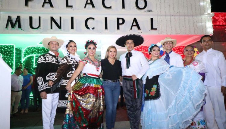 Playa del Carmen.- Como parte de las celebraciones del mes patrio, la presidenta Lili Campos realizó el tradicional encendido de luces iluminando el palacio municipal, la plaza cívica 28 de Julio, el Portal Maya, dos parques, así como adornos sobre 10 de las principales vialidades de la ciudad.