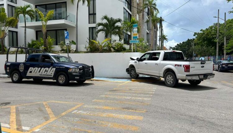 Playa del Carmen. – El conductor de una camioneta colisionó esta mañana con una patrulla de la policía municipal, cuando circulaba sobre la calle 14 bis en el cruce de la calle 20, en plena zona turística de la ciudad. Un policía resultó lesionado.