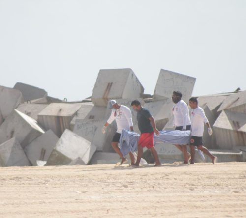 Cancún, Quintana Roo, 16 de marzo 2021.-De acuerdo con la información preliminar tres jóvenes trabajadores de los locales del Chedraui ubicado en el kilómetro 9 de la Zona Hotelera de Cancún, al concluir su jornada laboral acudieron a la playa Gaviota Azul, dónde se sentaron sobre una roca para platicar.