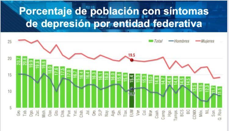 De acuerdo con la Encuesta de Bienestar Autorreportado (Enbiare) 2021, dada a conocer por el Instituto Nacional de Estadística y Geografía (Inegi), Quintana Roo registra el porcentaje más bajo de población con síntomas de depresión (11.5 por ciento de los encuestados); Yucatán está en el puesto 10 (16.7 por ciento) y Campeche en el 23 (14.7 por ciento).