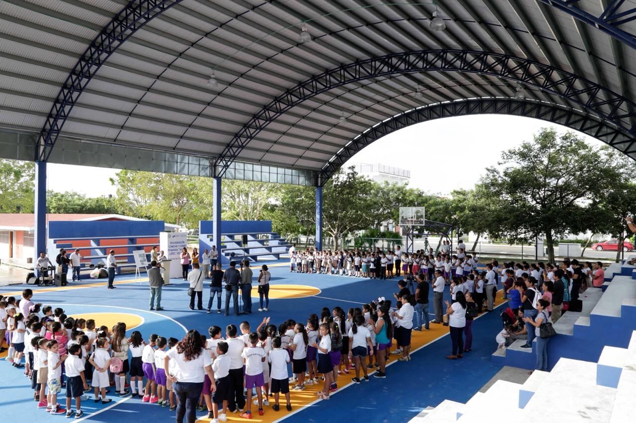 Playa del Carmen, Q. Roo, 24 de septiembre 2018.-La Presidenta Municipal de Solidaridad, Cristina Torres Gómez, inauguró la cancha y domo de usos múltiples en la Escuela Primaria “Ramón López Velarde” en la colonia 28 de Julio, lo que permitirá que más de 690 alumnos puedan realizar actividades cívicas, recreativas y deportivas al aire libre de manera segura pese a las condiciones climáticas. En total serán 14 los domos entregados por la actual Administración.