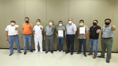 Playa del Carmen, Quintana Roo, 07 de agosto de 2021.- Luego de una semana de intenso trabajo, en la que representantes del CEN de la CROC escucharon y atendieron las inquietudes de las y los trabajadores del Grupo Xcaret, el secretario general de la CROC en Quintana Roo, Martín de la Cruz Gómez, acompañado de los comisionados nacionales Juan Sánchez Ortiz y Rafael Salgado Sandoval hizo entrega de los nombramientos que los acredita como representantes sindicales a los delegados generales del hotel Xcaret México y Parque Xcaret, así como al delegado departamental de camaristas del hotel Xcaret Arte.