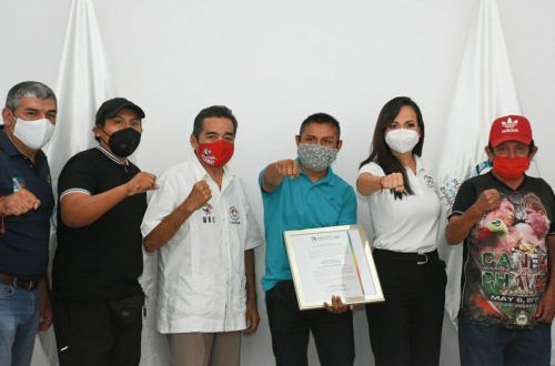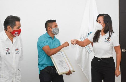 Puerto Morelos, Quintana Roo, 22 de diciembre de 2020.- La presidenta municipal Laura Fernández Piña entregó hoy el nombramiento de Comisionado de Box, Lucha Libre y Artes Marciales de Puerto Morelos, a Luis “El Duro” May Tzuc, a quien formuló un reconocimiento por todo el trabajo realizado en el municipio para formar a jóvenes pugilistas.