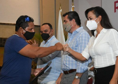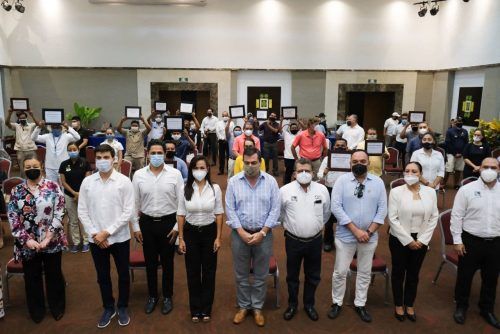 Puerto Morelos, Quintana Roo, 12 de noviembre de 2020.- La presidenta municipal Laura Fernández Piña encabezó hoy la entrega de reconocimientos a personal del sector turístico de Puerto Morelos, por su gran labor durante las contingencias generadas por los huracanes “Delta” y “Zeta” que, junto con la tormenta tropical “Gamma”, impactaron al municipio en el mes de octubre.
