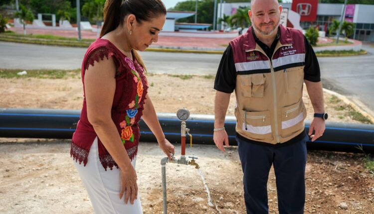 Chetumal.- Para que los y las chetumaleñas tengan un mejor servicio de agua potable, al que tienen derecho, la gobernadora Mara Lezama Espinosa y el director de la CAPA Hugo Garza Sáenz entregaron la obra de sustitución del acueducto de 14 pulgadas por uno de 24, de polietileno de alta densidad, en el tramo a partir del cárcamo del aeropuerto hasta el cruce de la avenida Revolución, sobre la avenida Álvaro Obregón.