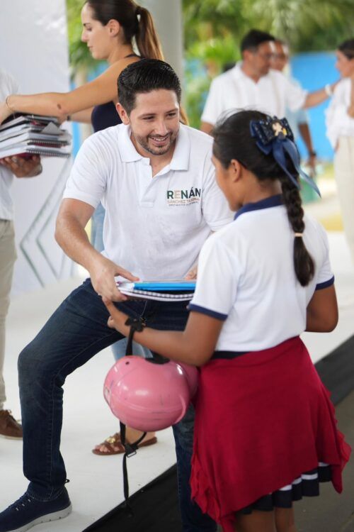 Cozumel. — Al iniciar con la entrega de libretas a alumnas y alumnos de Cozumel, el diputado por el Distrito 11, Renán Sánchez Tajonar, resaltó el apoyo directo a las y los estudiantes y padres de familia a través de este programa que suma más de 30 mil paquetes entregados en tres años consecutivos; así como, refrendó su compromiso de seguir contribuyendo a fortalecer la educación y la economía en el hogar.