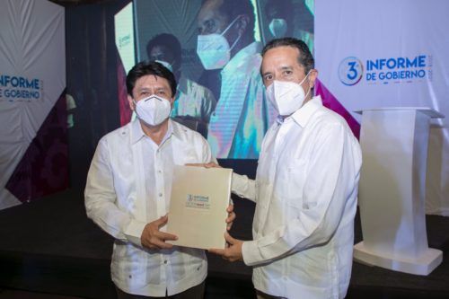 Tulum, Quintana Roo a 13 de septiembre de 2021.- El presidente Municipal de Tulum, Víctor Mas Tah, rindió el tercer informe de gobierno de la administración del Ayuntamiento de Tulum 2018-2021, acompañado por el gobernador del estado, Carlos Joaquín González y los regidores integrantes del cabildo, donde destacó el crecimiento del municipio en el rubro de infraestructura, servicios públicos y desarrollo económico mediante el trabajo conjunto con la