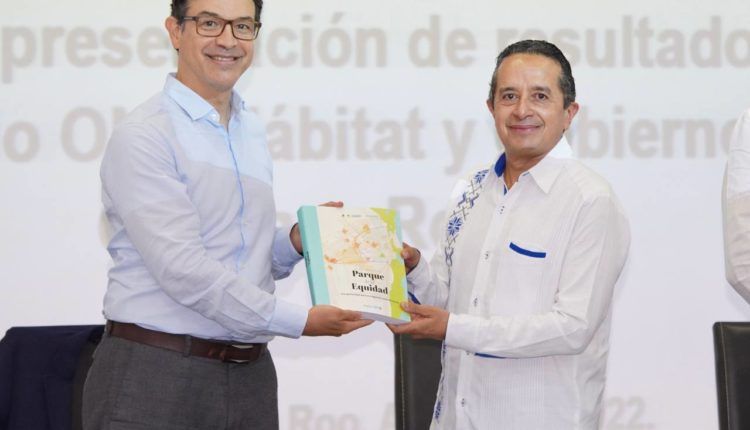Cancún. – El gobernador Carlos Joaquín recibió los resultados del convenio de colaboración entre la Agencia de las Naciones Unidas para los Asentamientos Humanos (ONU Hábitat) y el Gobierno de Quintana Roo, celebrado el 7 de octubre de 2019.
