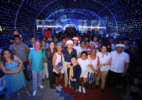 Con encendido de luces, inicia fiestas navideñas en Solidaridad; la presidenta Lili Campos abrió al público las villas navideñas de Playa del Carmen y de Puerto Aventuras