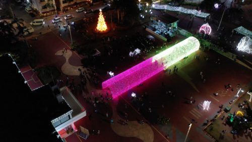 Playa del Carmen.- Acompañada de cientos de personas, así como integrantes de su gabinete, al grito de “Feliz de Navidad Solidaridad” la presidenta municipal Lili Campos encendió el árbol navideño, el túnel musical y luces de colores de 42 metros de largo, entre otros adornos instalados en la plaza cívica 28 de Julio.