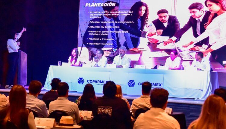 Playa del Carmen. – La candidata de la coalición “Sigamos Haciendo Historia en Quintana Roo” a la presidencia municipal de Solidaridad, Estefanía Mercado, anunció ante empresarios de la Coparmex Riviera Maya que, en su gobierno, pondrá en marcha los programas Cero Clausuras, Solidaridad Seguro y activará el Comité Ejecutivo Ciudadano compuesto por todos los sectores de la sociedad.