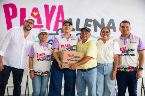 Playa del Carmen.– La presidenta municipal Estefanía Mercado encabezó hoy la entrega de despensas del nuevo programa “Playa Llena, Corazón Contento”, una iniciativa que busca garantizar el derecho a la alimentación mensual de 3 mil familias playenses.
