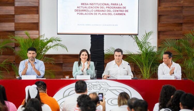 Playa del Carmen.– Con visión estratégica y liderazgo firme, la presidenta municipal Estefanía Mercado encabezó una nueva mesa institucional en el marco de la actualización del Programa de Desarrollo Urbano (PDU) del Centro de Población de Playa del Carmen, uno de los proyectos más relevantes de la administración 2024–2027 para encaminar el crecimiento de la ciudad hacia un modelo ordenado, sostenible y humano.