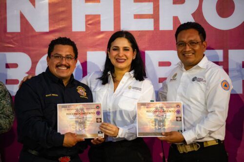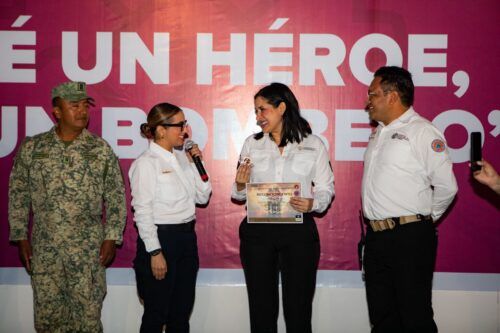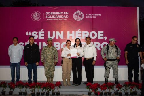 Estefanía Mercado aprovechó para anunciar, en reconocimiento a la creciente necesidad de atención oportuna y con el compromiso de mejorar las capacidades, la apertura de 15 nuevas plazas para Bomberos en Solidaridad, con el objetivo de reforzar la corporación y garantizar que la comunidad esté mejor protegida.