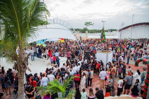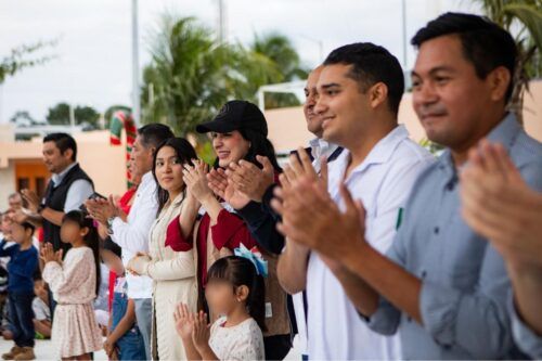 El alcalde Gilberto Gómez y habitantes de la localidad agradecen a la Presidenta Municipal de Solidaridad por esta obra que se convertirá en el corazón de la Alcaldía
