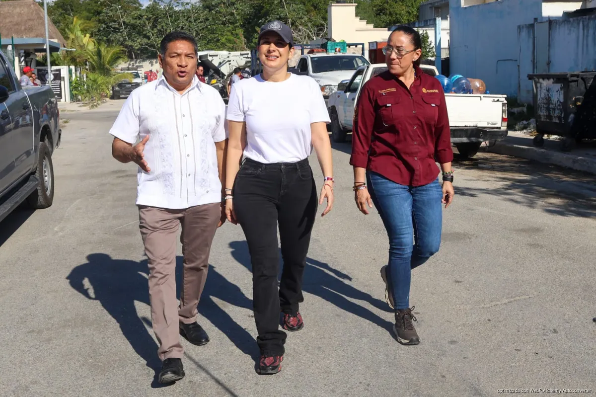 Durante el recorrido, Estefanía Mercado reconoció el trabajo interinstitucional realizado durante los festejos del Carnaval de Playa del Carmen 2026, informando que las celebraciones concluyeron con saldo blanco tanto en la cabecera municipal como en Puerto Aventuras.