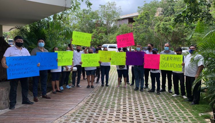 Playa del Carmen, Solidaridad, Q. Roo, 30 de noviembre de 2021.- Debido a la gran cantidad de irregularidades que atentan contra sus derechos laborales, al menos 60 trabajadores del Hotel Copal Tulum, ubicado en el desarrollo Aldea Zama, se manifestaron pacíficamente para exigir solución a las arbitrariedades de las que son víctimas, exigen también la destitución del ama de llaves.