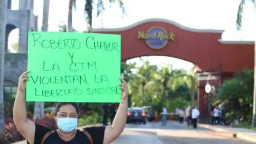 “Roberto Chapur y la CTM violentan la libertad sindical”,“Fuera CTM”, “Exigimos Respeto a nuestros derechos laborales”,”Fuera Toribio ladrón de propinas”Eliminación de trabajo forzoso”, Fuera CTM y adentro la CROC”, fueron solo algunas de las consignas que podían leerse en las cartulinas de los manifestantes.