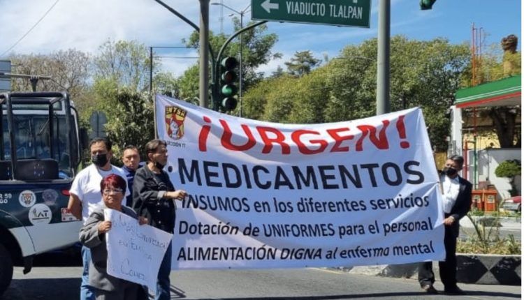 Afuera del primer nosocomio colocaron una manta que decía: “Sr. Presidente Lic. Andrés Manuel López Obrador: los trabajadores de los hospitales psiquiátricos solicitamos su intervención ante la carencia de medicamentos e insumos, irregularidades en los servicios de alimentación y falta de uniformes”.