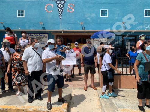 Cancún, Quintana Roo, 24 de abril 2021 .- Un grupo de 30 personas se manifestaron a fuera de la clínica Sobrino, ubicado en la supermanzans 63, para que las autoridades municipales y estatales intervenga para que el dueño vuelva abrir sus puertas, las cuales cerró por la inseguridad.