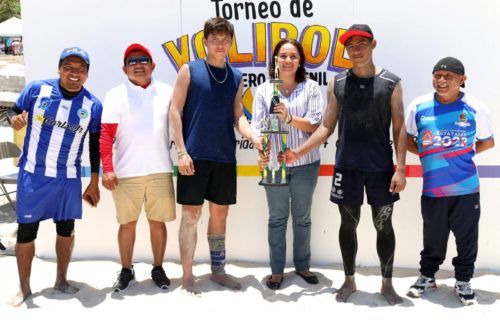 Playa del Carmen.-Para promover la sana convivencia y hábitos saludables entre las y los jóvenes se llevó a cabo el Torneo de Volibol Playero organizado por el Sistema para el Desarrollo Integral de la Familia, este sábado 14 de mayo en playa Fundadores, con un nutrida participación de jóvenes entusiastas.