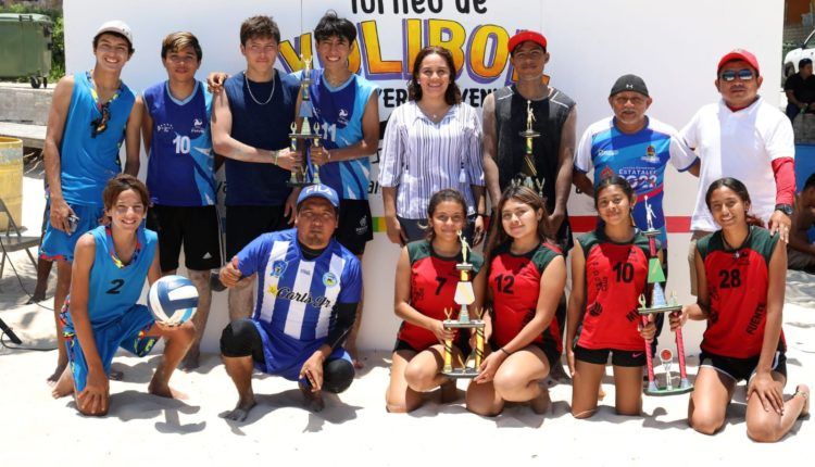 Playa del Carmen.-Para promover la sana convivencia y hábitos saludables entre las y los jóvenes se llevó a cabo el Torneo de Volibol Playero organizado por el Sistema para el Desarrollo Integral de la Familia, este sábado 14 de mayo en playa Fundadores, con un nutrida participación de jóvenes entusiastas.