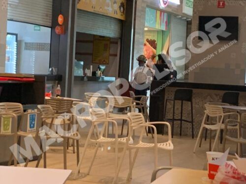 Cancún, Quintana Roo, 8 de marzo 2021 .- Se movilizaron los cuerpos de emergencias hasta la plaza comercial Malecón Américas tras el reporte de una persona baleada en el área del comedor; sin embargo, se trató de una explosión en el local de comida Las Kekas lo que causó gran estruendo.