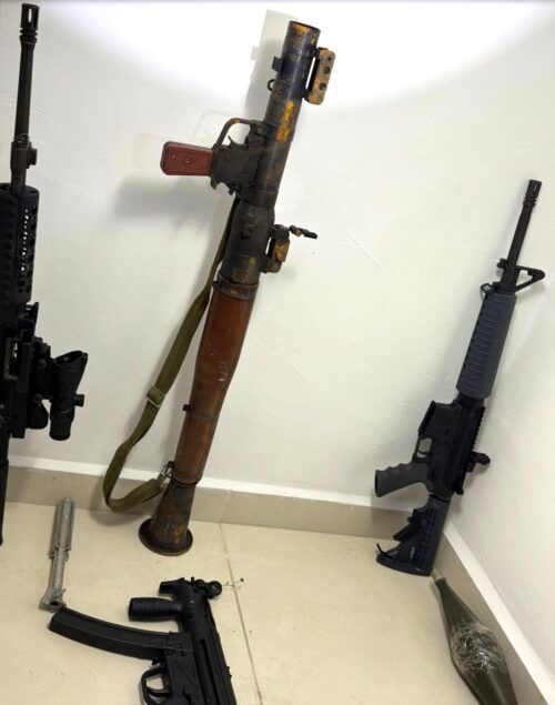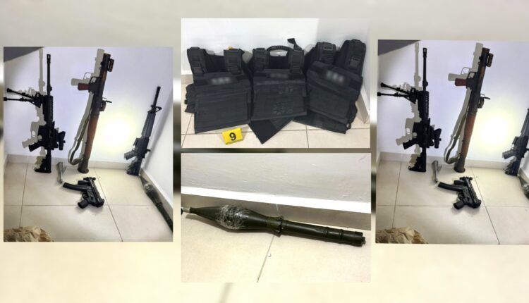 En el domicilio se localizaron dos subametralladoras, un lanzagranadas, dos armas largas, un misil, sustancias con las características de la cocaína y metanfetamina; un cargador, tres cartuchos, equipo táctico y diversa documentación. Durante el cateo, también se contó con el apoyo de la Secretaría de la Defensa Nacional (Defensa), Guardia Nacional (GN) y la policía municipal de Juárez.