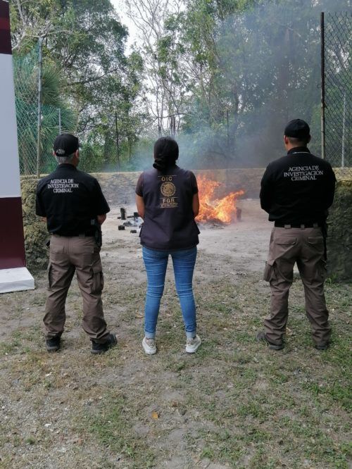 Cancún. – La Fiscalía General de la República (FGR) en Quintana Roo, realizo en coordinación con personal de la Secretaría de la Defensa Nacional (SEDENA), incineración de narcóticos y destrucción de objetos del delito.